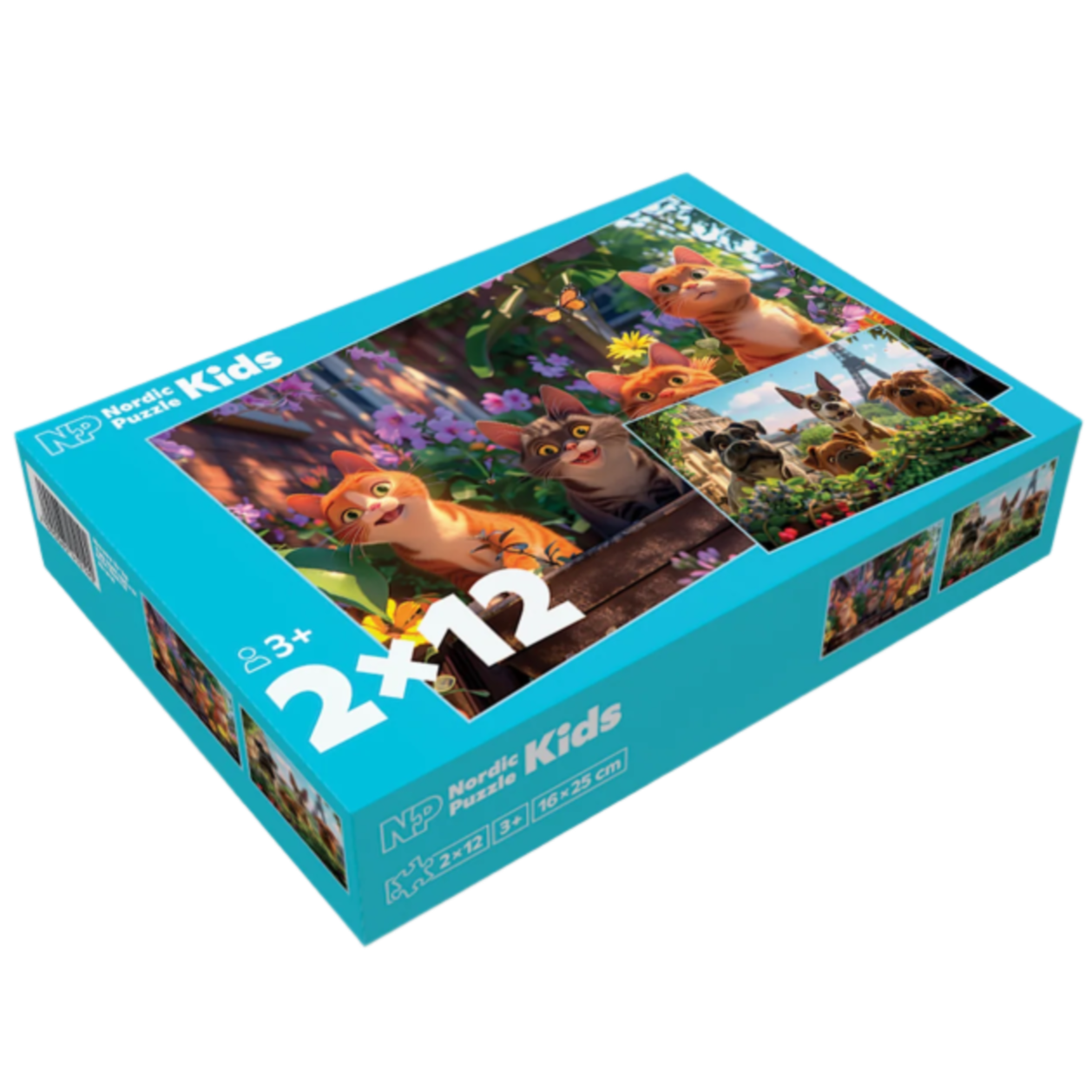Puslespill 2x12 brikker : Katt og hund